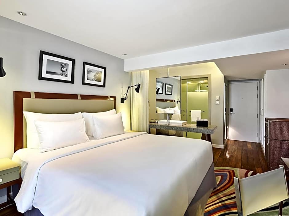 Overlooking the neighborhood, this spacious room has a flat-screen cable TV, fridge and an electric kettle. Private bathroom comes with a hairdryer, bathtub, free toiletries and rain shower facilities.